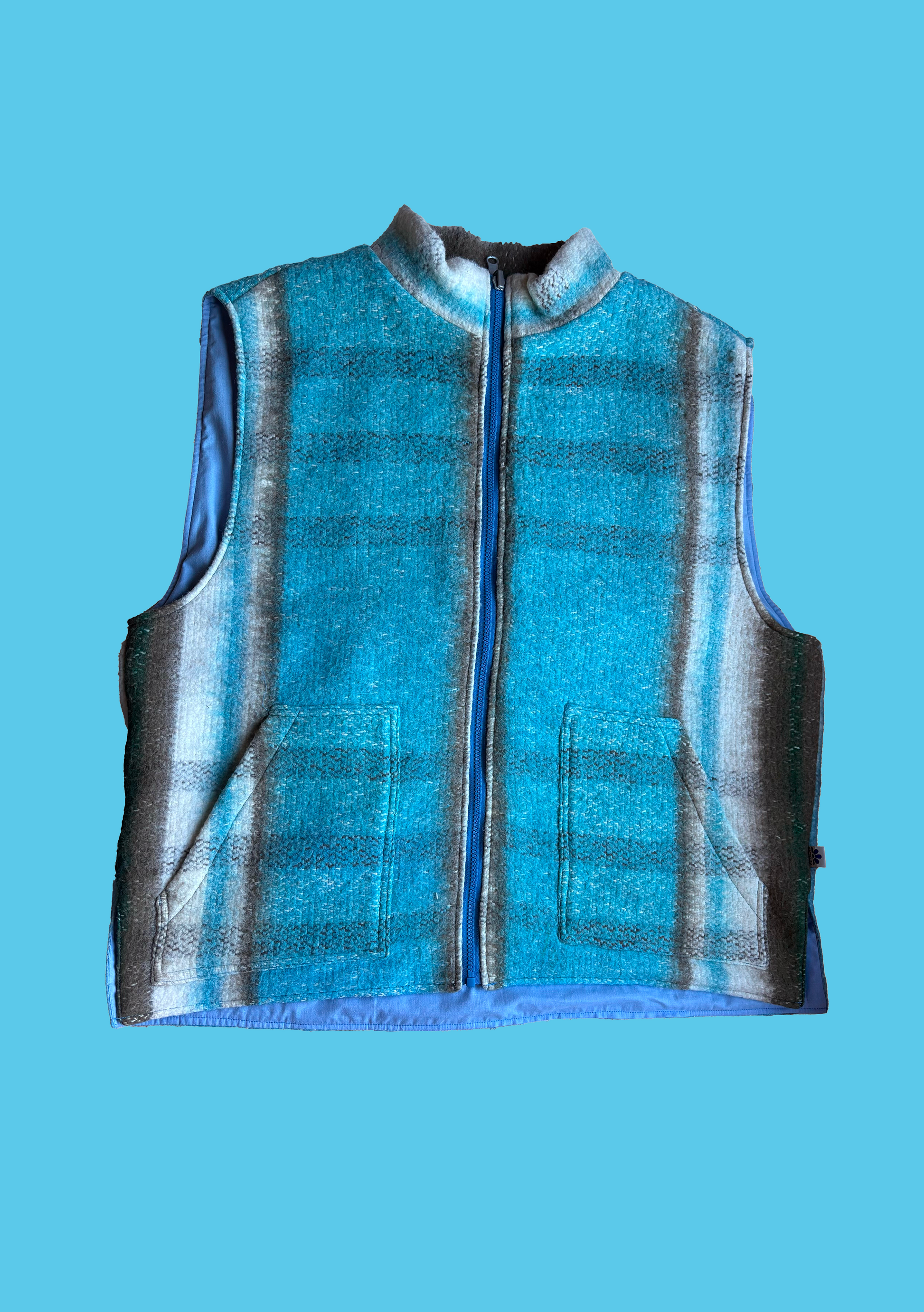 Notre gilet réversible a été conçue dans des couvertures en laine 100% naturelles, avec un motif et des couleurs tout droit venues des années 70 .