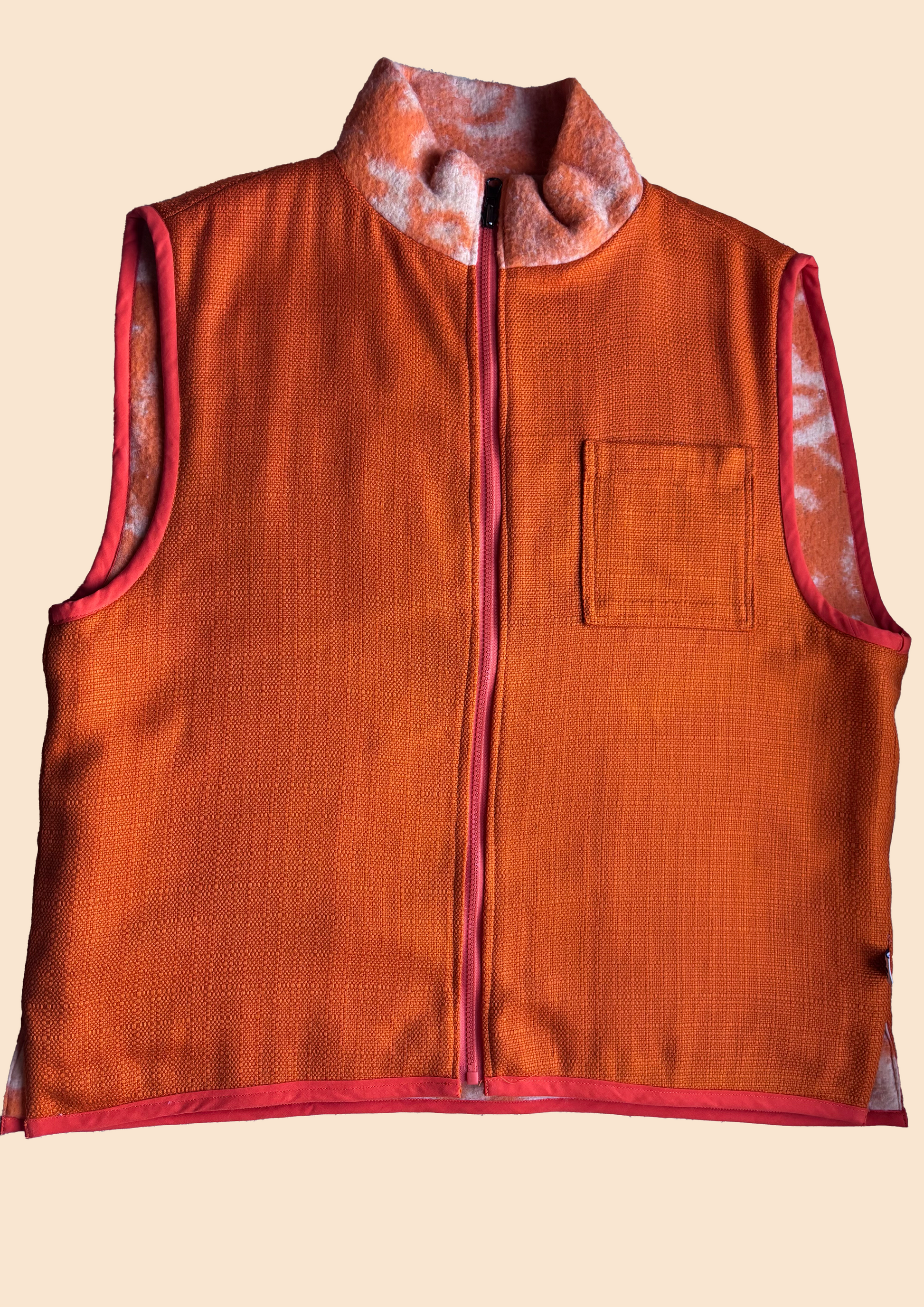 Notre gilet réversible a été conçue dans des couvertures en laine 100% naturelles, avec un motif et des couleurs tout droit venues des années 70 .