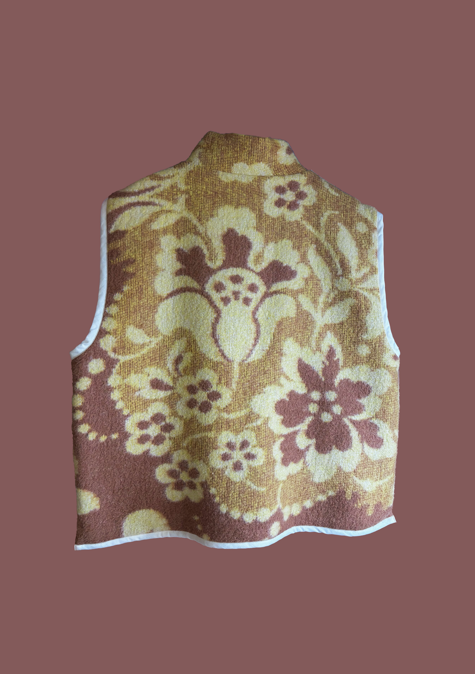 Notre gilet réversible a été conçue dans des couvertures en laine 100% naturelles, avec un motif et des couleurs tout droit venues des années 70 .