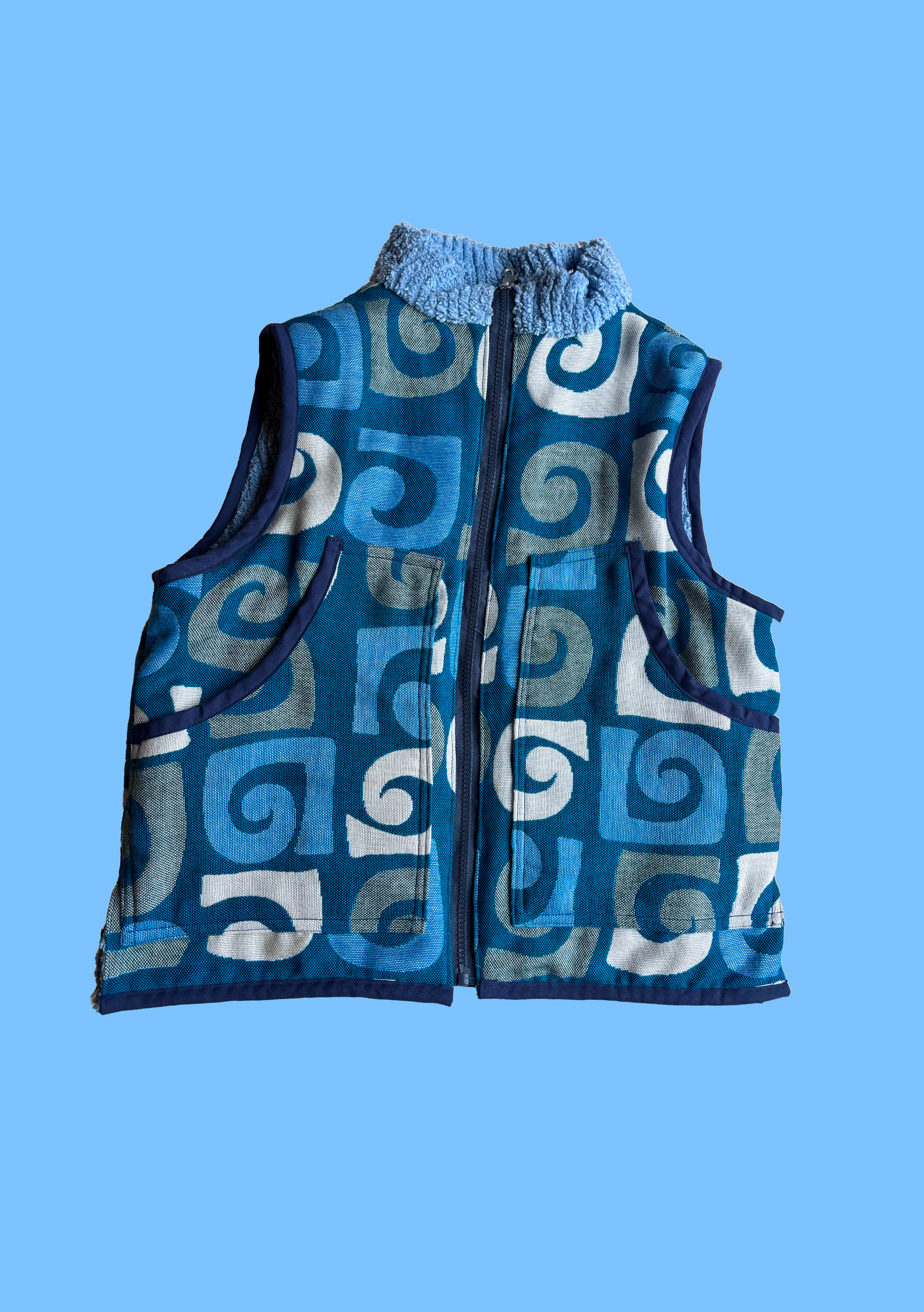 Notre gilet réversible a été conçue dans des couvertures en laine 100% naturelles, avec un motif et des couleurs tout droit venues des années 70 .