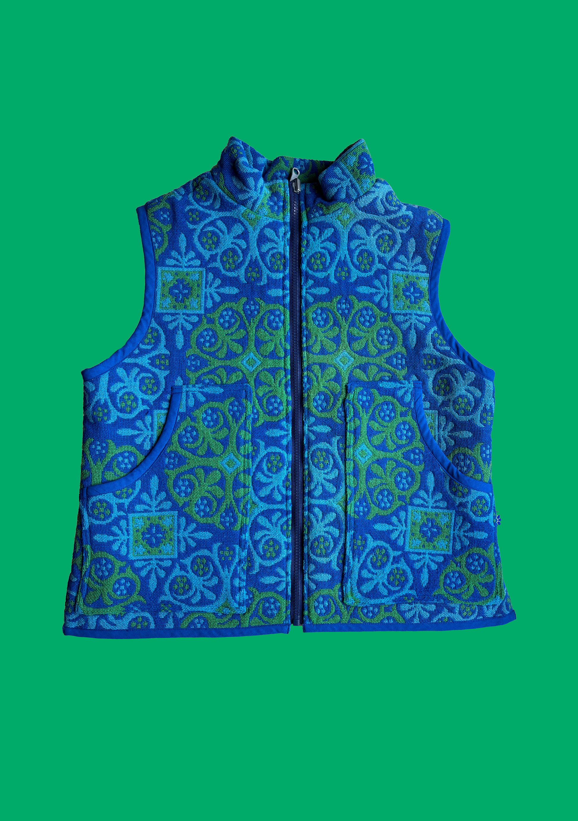 Notre gilet réversible a été conçue dans des couvertures en laine 100% naturelles,  avec un motif et des couleurs tout droit venues des années 70 .