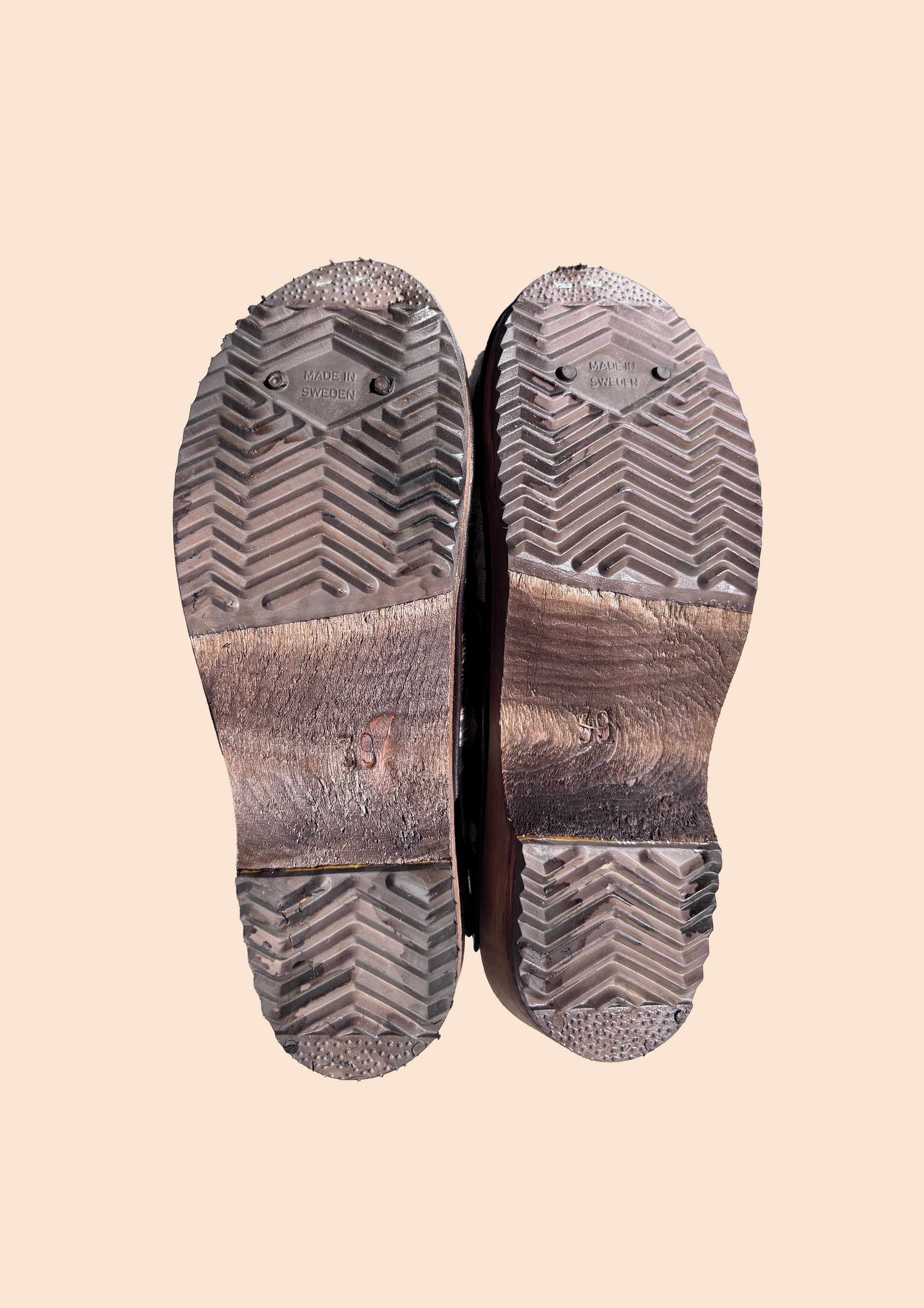 Authentiques sabots traditionnels suédois en bois et cuir véritable, fabriqués à la main avec soin, renforcés d’agrafes et dotés de semelles en caoutchouc antidérapant et anti-bruit. Chaque paire est façonnée par des artisans suédois qui perpétuent une tradition.