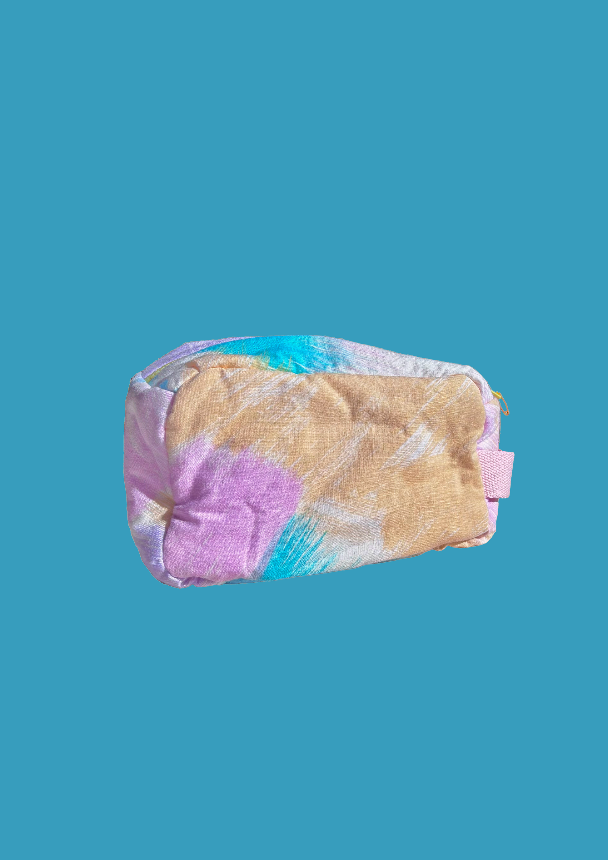 Fabriquée à partir de tissus upcyclés et rembourrée avec de la ouate en coton, elle est parfaite pour ranger vos essentiels de voyage ou votre maquillage.