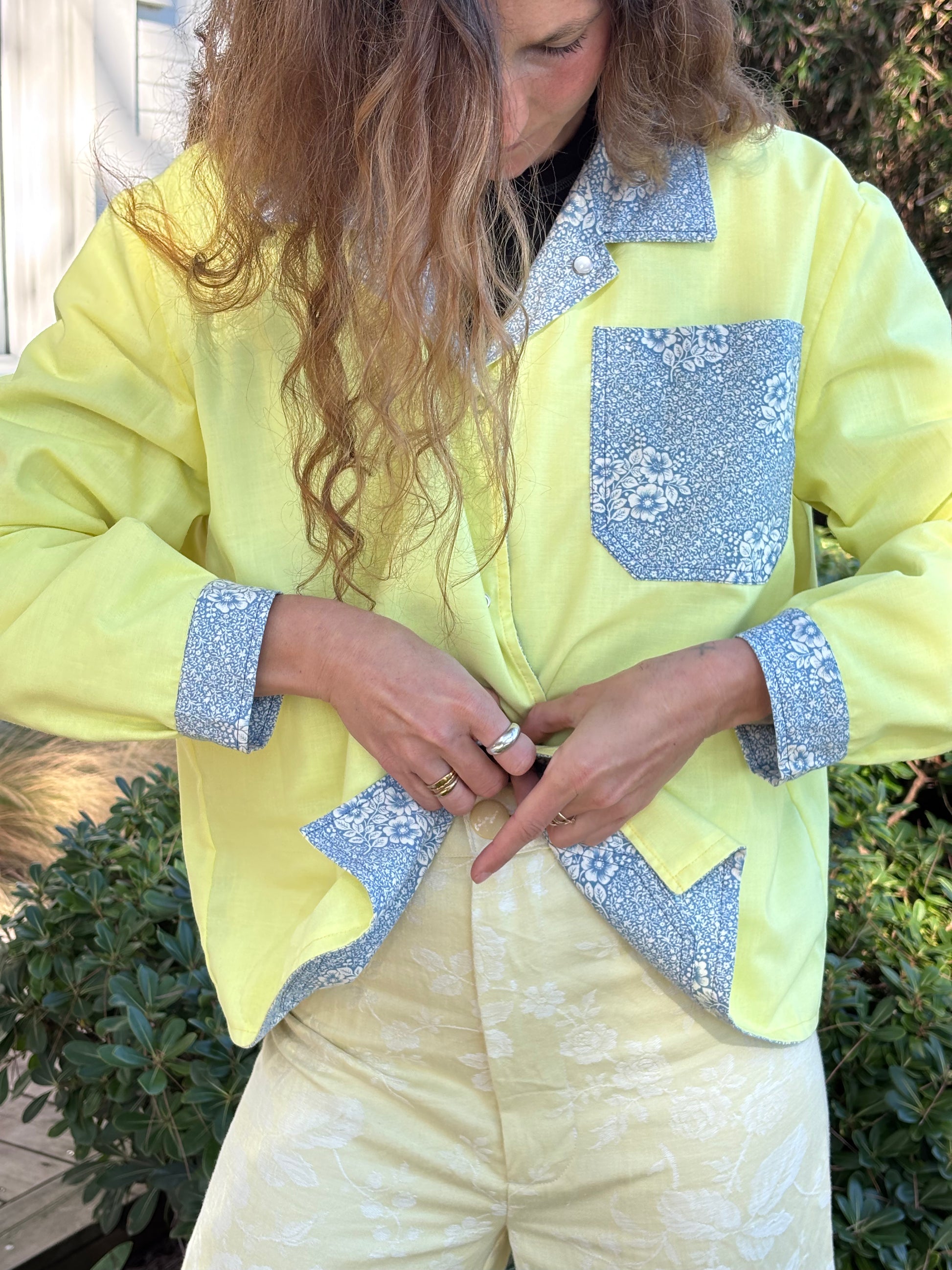 Nous avons voulu, en créant la veste réversible Amar, en faire une pièce intemporelle. Sobre et durable à la façon d'un vêtements de travail, pratique et féminine grâce à ses jolies pressions nacrées, (hommage à l'iconique cardigan Agnes b).
